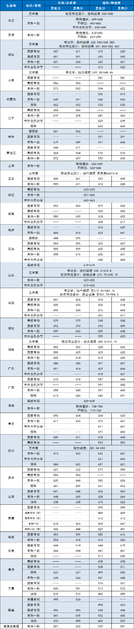 (以下分數含全國政策性加分) ![]() 2020年中央財經大學錄取分數線