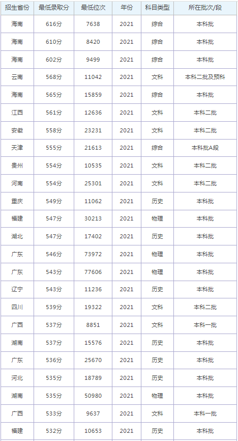 想要報考南寧師范大學(xué)的同學(xué),都比較關(guān)注南寧師范大學(xué)2022年的錄取分?jǐn)?shù)線,那么,高考多少分可以上南寧師范大學(xué)呢?南寧師范大學(xué)歷年最低錄取分?jǐn)?shù)線是多少?下面為大家整理了南寧師范大學(xué)錄取分?jǐn)?shù)線2022是多少分(含2021-2022歷年),希望對大家有所幫助,僅供參考。![]() 南寧師范大學(xué)錄取分?jǐn)?shù)線2022是多少分? 截止到目前,南寧師范大學(xué)2022年錄取分?jǐn)?shù)線還未公布,如果需要2022年南寧師范大學(xué)分?jǐn)?shù)線的同學(xué),不妨參考2021年南寧師范大學(xué)錄取分?jǐn)?shù)線和南寧師范大學(xué)歷年錄取分?jǐn)?shù)線,希望對大家有所幫助,如有不同,請以南寧師范大學(xué)官網(wǎng)最新公布的信息為準(zhǔn)。 2021南寧師范大學(xué)錄取分?jǐn)?shù)線 ![]() ![]() 南寧師范大學(xué)是985還是211大學(xué)? 根據(jù)全國985和211大學(xué)名單可知:南寧師范大學(xué)既不是985大學(xué),也不是211大學(xué)。 ![]() 南寧師范大學(xué)簡介 南寧師范大學(xué)(Nanning Normal University)坐落于廣西壯族自治區(qū)首府南寧市,是國家中西部高?;A(chǔ)能力建設(shè)工程(二期)項目學(xué)校,教育部數(shù)據(jù)中國“百校工程”項目試點學(xué)校,全國深化創(chuàng)新創(chuàng)業(yè)教育改革示范高校,西南大學(xué)對口支援建設(shè)學(xué)校,廣西新增博士學(xué)位授予單位立項建設(shè)單位,對口支援廣西民族師范學(xué)院。 學(xué)校前身為創(chuàng)辦于1953年的廣西教師進修學(xué)院,1960年7月更名為南寧師范學(xué)院,1966年7月更名為廣西教育學(xué)院,1979年2月復(fù)名南寧師范學(xué)院,1985年5月更名為廣西師范學(xué)院,2002年12月,南寧民族師范學(xué)校并入,2018年12月更名為南寧師范大學(xué)。 通過對南寧師范大學(xué)錄取分?jǐn)?shù)線的了解,大家大概知道了高考多少分可以上南寧師范大學(xué),以上數(shù)據(jù)源于網(wǎng)絡(luò),僅供參考,大家如果想要了解其他大學(xué)錄取分?jǐn)?shù)線、大學(xué)簡介、大學(xué)排行榜、專業(yè)選擇等內(nèi)容,請點擊訪問:大學(xué)欄目。 推薦閱讀: 北京大學(xué)錄取分?jǐn)?shù)線 清華大學(xué)錄取分?jǐn)?shù)線 中國科學(xué)技術(shù)大學(xué)錄取分?jǐn)?shù)線 復(fù)旦大學(xué)錄取分?jǐn)?shù)線 南開大學(xué)錄取分?jǐn)?shù)線 同濟大學(xué)錄取分?jǐn)?shù)線 |