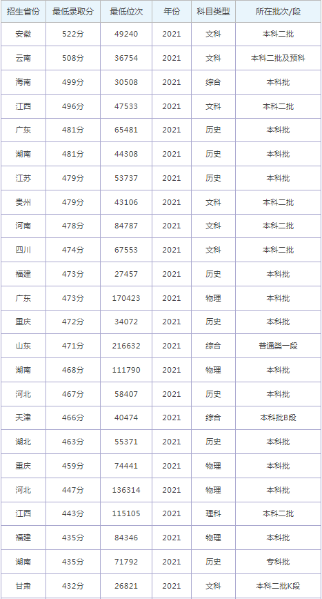 想要報考武漢紡織大學外經貿學院的同學,都比較關注武漢紡織大學外經貿學院2022年的錄取分數線,那么,高考多少分可以上武漢紡織大學外經貿學院呢?武漢紡織大學外經貿學院歷年最低錄取分數線是多少?下面為大家整理了武漢紡織大學外經貿學院錄取分數線2022是多少分(含2021-2022歷年),希望對大家有所幫助,僅供參考。![]() 武漢紡織大學外經貿學院錄取分數線2022是多少分? 截止到目前,武漢紡織大學外經貿學院2022年錄取分數線還未公布,如果需要2022年武漢紡織大學外經貿學院分數線的同學,不妨參考2021年武漢紡織大學外經貿學院錄取分數線和武漢紡織大學外經貿學院歷年錄取分數線,希望對大家有所幫助,如有不同,請以武漢紡織大學外經貿學院官網最新公布的信息為準。 2021武漢紡織大學外經貿學院錄取分數線 ![]() ![]() 武漢紡織大學外經貿學院是公辦還是民辦大學? 根據全國高等學校信息可知,武漢紡織大學外經貿學院是民辦大學。通常來說,公辦大學社會認可度高,各專業學費較便宜,民辦大學各專業收費較貴。 ![]() 武漢紡織大學外經貿學院簡介 武漢紡織大學外經貿學院,是2002年經國家教育部批準設立、由武漢紡織大學舉辦的一所工、文、經、管、藝相結合的高等學院。 學院各校區生活設施齊全,教學條件良好。擁有先進的各類電教設備,豐富的館藏圖書雜志,方便快捷的電子閱覽室,寬敞明亮的圖書報刊閱覽室,安全高速的校園網,標準田徑運動場,大學生活動中心和就業創業指導中心.學院堅持“努力建設特色鮮明的高水平應用型高校”的辦學理念、“辦合格學院、建特色學院、創品牌學院”的發展目標,制定“立志修身,學以致用”的院訓,形成“為人師表,教以致用”的優良教風,努力實踐名師、名校、名生的“三名”戰略。 通過對武漢紡織大學外經貿學院錄取分數線的了解,大家大概知道了高考多少分可以上武漢紡織大學外經貿學院,以上數據源于網絡,僅供參考,大家如果想要了解其他大學錄取分數線、大學簡介、大學排行榜、專業選擇等內容,請點擊訪問:大學欄目。 推薦閱讀: 西安交通大學錄取分數線 浙江大學錄取分數線 中國農業大學錄取分數線 哈爾濱工業大學錄取分數線 北京師范大學錄取分數線 中央民族大學錄取分數線 |