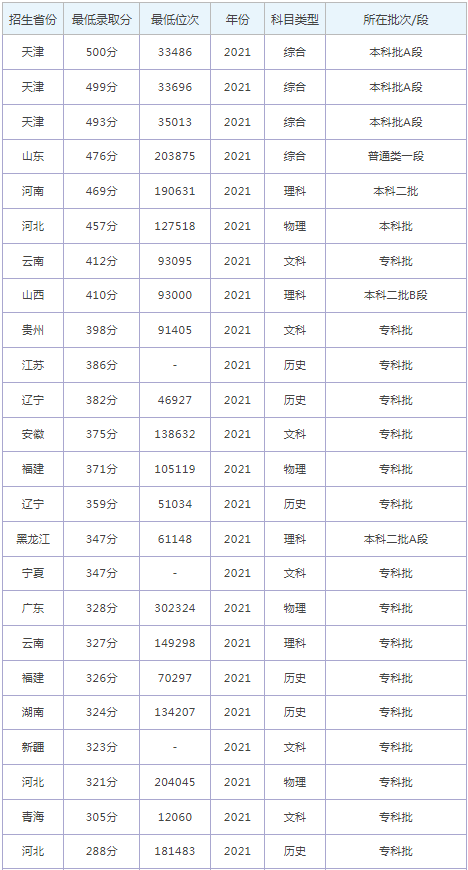 想要報考河北石油職業技術大學的同學,都比較關注河北石油職業技術大學2022年的錄取分數線,那么,高考多少分可以上河北石油職業技術大學呢?河北石油職業技術大學歷年最低錄取分數線是多少?下面為大家整理了河北石油職業技術大學錄取分數線2022是多少分(含2021-2022歷年),希望對大家有所幫助,僅供參考。![]() 河北石油職業技術大學錄取分數線2022是多少分? 截止到目前,河北石油職業技術大學2022年錄取分數線還未公布,如果需要2022年河北石油職業技術大學分數線的同學,不妨參考2021年河北石油職業技術大學錄取分數線和河北石油職業技術大學歷年錄取分數線,希望對大家有所幫助,如有不同,請以河北石油職業技術大學官網最新公布的信息為準。 2021河北石油職業技術大學錄取分數線 ![]() ![]() 河北石油職業技術大學是幾本? 首先,這一點希望大家清楚,教育部門并沒有劃分河北石油職業技術大學是一本還是二本,畢業證上只有本科和專科之分,是幾本只是民間的說法。(某大學在某省是第一批次招生的話,通常認為該大學是一本大學,在第二批次招生的話,通常認為該大學是二本大學) 根據公開信息可知:河北石油職業技術大學在河北是本科批次招生,所以我們通常認為河北石油職業技術大學是本科大學。(注:自2020年開始,河北本科一批、二批合并為本科批) 如果你不是河北考生,河北石油職業技術大學在你所在的省份是本科二批招生的話,你也可以認為河北石油職業技術大學是二本大學。 ![]() 河北石油職業技術大學簡介 河北石油職業技術大學(HebeiPetroleumUniversityofTechnology)位于河北省承德市,是一所中央與地方共建、以河北省人民政府管理為主的公辦本科職業大學,是教育部全國示范性高等工程專科重點建設學校、國家示范性高等職業院校、中國特色高水平高職學校和專業建設計劃、國家優質專科高等職業院校、全國機械行業服務先進制造高水平骨干職業院校、中國石油和化工職業教育“一帶一路”聯盟創始成員單位。 學校始于1903年創辦于天津的“北洋工藝學堂”。1952年,開始主要面向石油工業服務。1958年,遷至河北省承德市。1992年4月,學校改名為“承德石油高等專科學校”。2011年,學校通過高等職業院校人才培養評估。2016年,被列為國家優質專科高等職業院校建設立項單位。2021年1月,經教育部批復,整合河北工業大學城市學院與承德石油高等專科學校辦學資源,轉設為河北石油職業技術大學。 通過對河北石油職業技術大學錄取分數線的了解,大家大概知道了高考多少分可以上河北石油職業技術大學,以上數據源于網絡,僅供參考,大家如果想要了解其他大學錄取分數線、大學簡介、大學排行榜、專業選擇等內容,請點擊訪問:大學欄目。 推薦閱讀: 西安交通大學錄取分數線 浙江大學錄取分數線 中國農業大學錄取分數線 哈爾濱工業大學錄取分數線 北京師范大學錄取分數線 中央民族大學錄取分數線 |