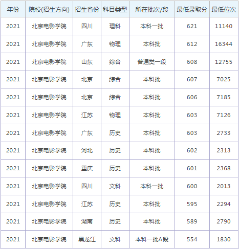 想要報考北京電影學院的同學,都比較關注北京電影學院2022年的錄取分數線,那么,高考多少分可以上北京電影學院呢?北京電影學院歷年最低錄取分數線是多少?下面為大家整理了北京電影學院錄取分數線2022是多少分(含2021-2022歷年),希望對大家有所幫助,僅供參考。![]() 北京電影學院錄取分數線2022是多少分? 截止到目前,北京電影學院2022年錄取分數線還未公布,如果需要2022年北京電影學院分數線的同學,不妨參考2021年北京電影學院錄取分數線和北京電影學院歷年錄取分數線,希望對大家有所幫助,如有不同,請以北京電影學院官網最新公布的信息為準。 2021北京電影學院錄取分數線 ![]() ![]() 北京電影學院是幾本? 北京電影學院在北京是本科一批招生,我們通常認為北京電影學院是一本大學。 ![]() 北京電影學院簡介 北京電影學院(Beijing Film Academy),是北京市人民政府、國家新聞出版廣電總局和中華人民共和國教育部共建的藝術高校,中國政府獎學金來華留學生接收院校,國際電影電視高等院校聯合會(CILECT)理事學校和亞太地區電影年會執行主席,首家主持國家“863”項目的藝術院校,教育部本科教學工作水平評估優秀學校,北京市留學生教學管理先進單位,2018中國科幻大會優秀組織單位,是國家動畫教育研究基地、北京影視藝術研究基地和中國兒童電影研究中心的掛牌單位。 北京電影學院的前身是1950年創建的中央電影局表演藝術研究所。該所1951年更名為中央文化部電影局電影學校,1953年更名為北京電影學校,1956年改制為北京電影學院。 通過對北京電影學院錄取分數線的了解,大家大概知道了高考多少分可以上北京電影學院,以上數據源于網絡,僅供參考,大家如果想要了解其他大學錄取分數線、大學簡介、大學排行榜、專業選擇等內容,請點擊訪問:大學欄目。 推薦閱讀: 西安交通大學錄取分數線 浙江大學錄取分數線 中國農業大學錄取分數線 哈爾濱工業大學錄取分數線 北京師范大學錄取分數線 中央民族大學錄取分數線 |