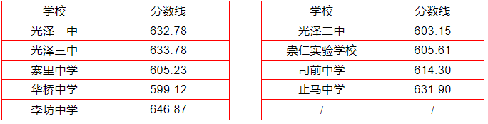 初中學校未完成的光澤一中定向生招生計劃,按統招生錄取程序從全縣余下的有填報光澤一中志愿的考生中擇優錄取,錄取分數線:633.18 三、光澤二中統招錄取分數線:494.35 松溪縣普通高中最低錄取控制分數線一、松溪一中統招錄取分數線:654.97 二、松溪一中定向招生各校錄取分數線: