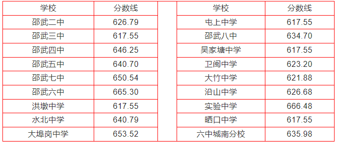 邵武一中未完成定向招生計劃,剩余指標按邵武市考生統一劃線:664.65 三、邵武四中統招錄取分數線:588.00 四、邵武七中統招錄取分數線:485.08 五、順昌金橋邵武招生錄取分數線:441. 64 武夷山市普通高中最低錄取控制分數線一、武夷山一中統招錄取分數線:689.70 二、武夷山一中定向招生各校錄取分數線